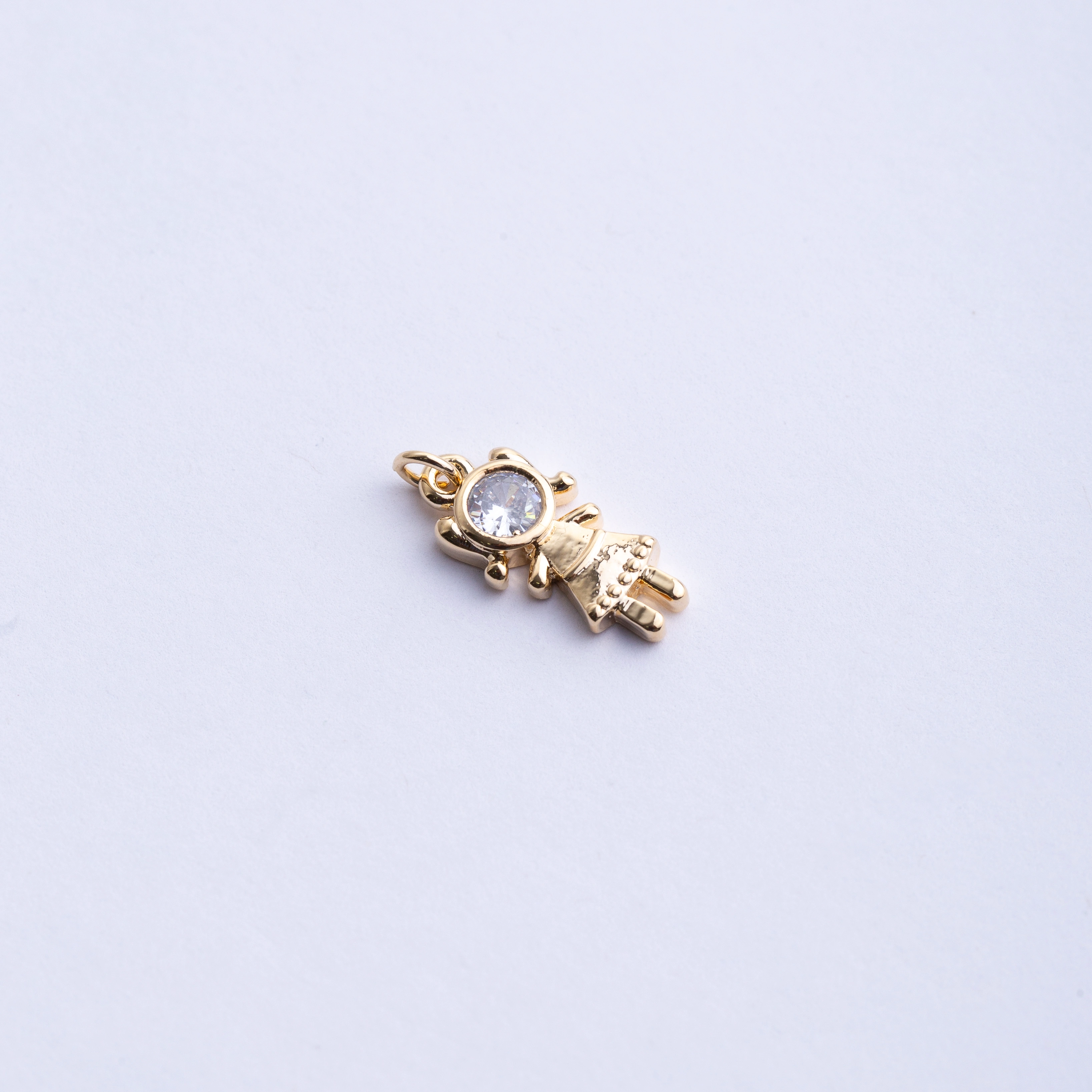 This charming pendant captures the essence of childhood in the form of a small girl figure, complete with a vibrant fuchsia crystal placed at the head. The crystal’s rich color brings a playful energy to the gold charm, reflecting the brightness and joy associated with youth. It’s an endearing accessory that encapsulates the cheerfulness of young life, perfect for those who appreciate the simplicity and charm of childhood