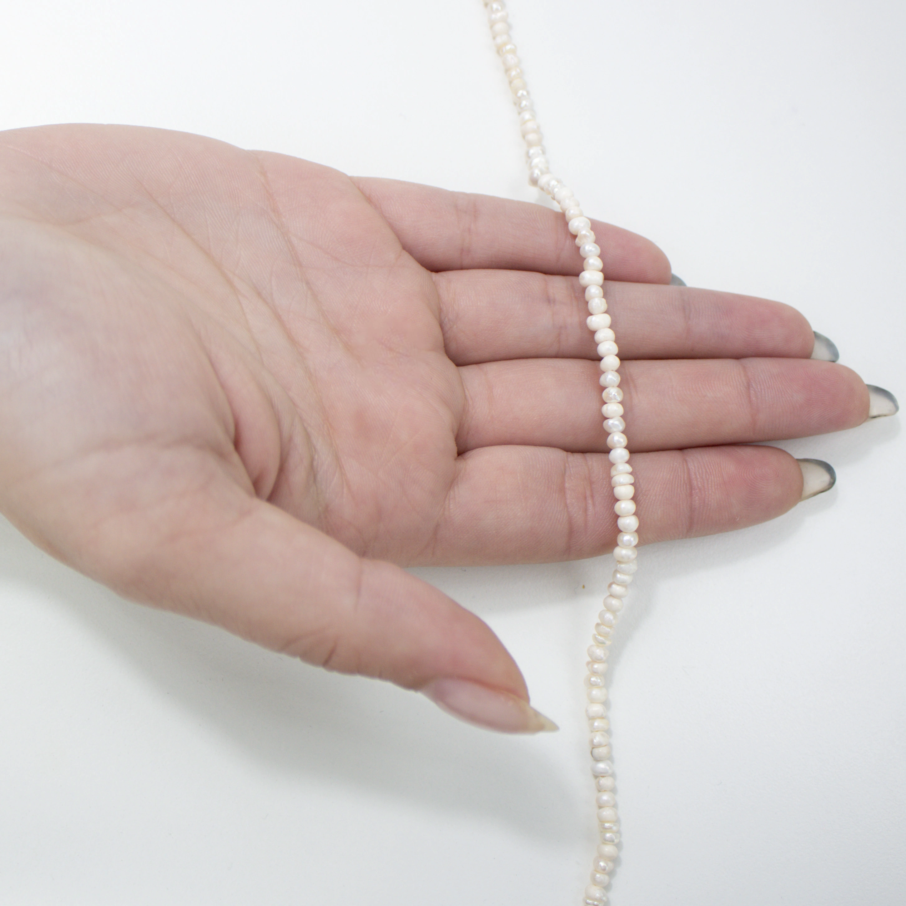 Discover the understated luxury of our Ethereal Elegance Pearl Strand, a delicate and lustrous treasure from the depths of the sea. Each pearl in this exquisite strand measures between 3-4mm, carefully selected for its natural beauty and unique charm. These pearls flaunt a soft, iridescent sheen that captures the light, creating a subtle spectrum of enchanting hues that complement any complexion
