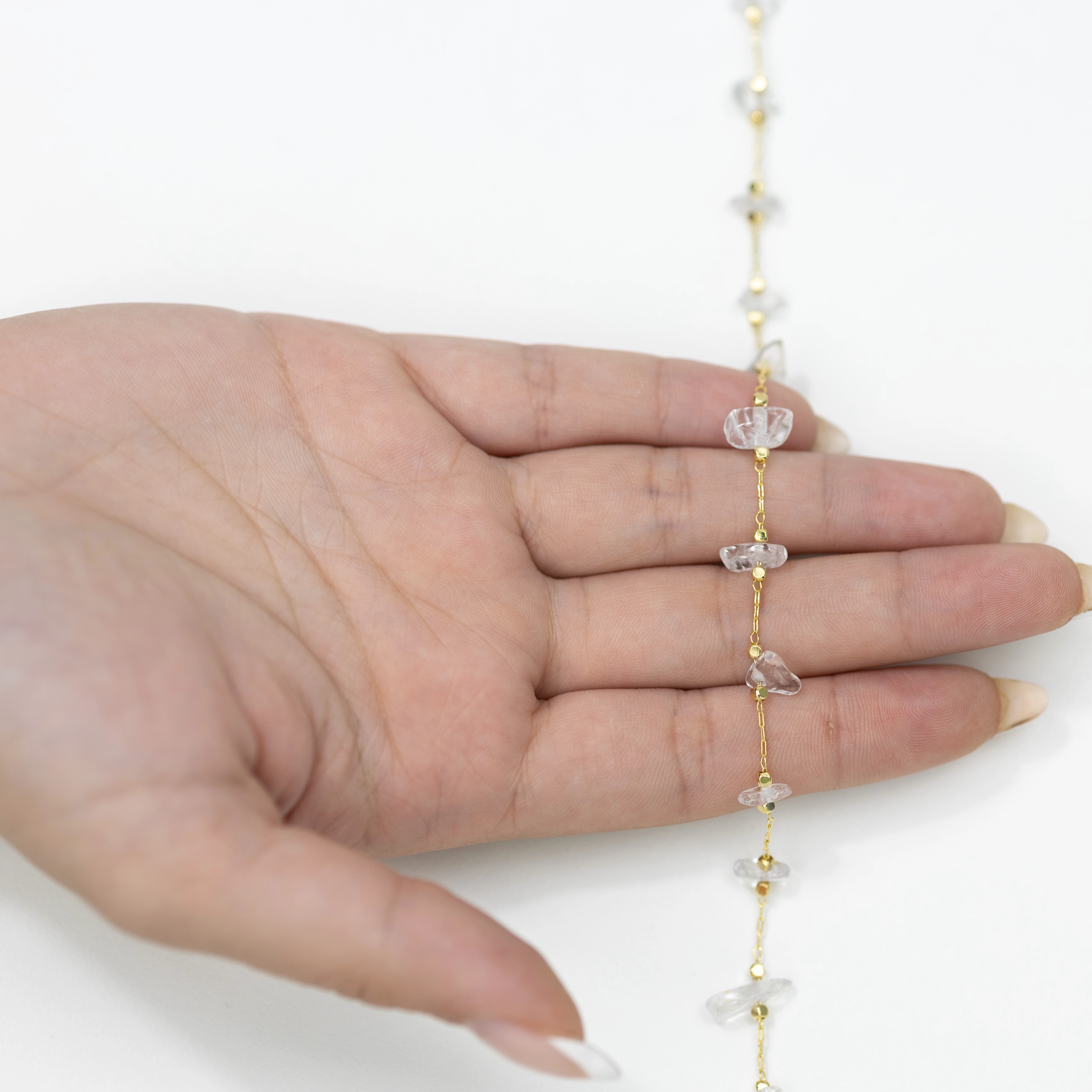 his exquisite chain features delicate pieces of transparent agate, each polished to achieve impressive clarity that captures and reflects light beautifully. Known for its strength and beauty, agate brings a touch of natural sophistication to any outfit. In addition to transparent agate, we offer this chain in a variety of other precious stones, allowing you to customize the accessory to your personal style or desired meaning. Each stone has been chosen for its quality and beauty, strung on a delicate chain that complements its luster. Perfect for everyday wear or special occasions, this chain is not only a stylish accessory but also a conversation piece for its beauty and the unique energy each stone brings