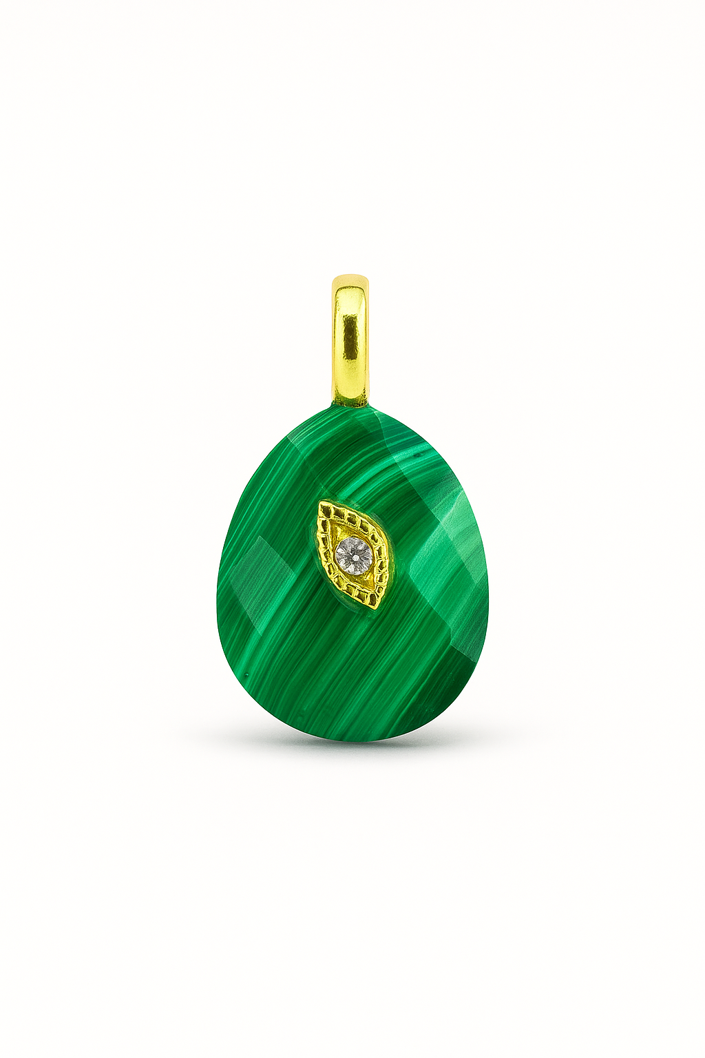 Faceted Malachite Teardrop Pendant with Mini Evil-Eye