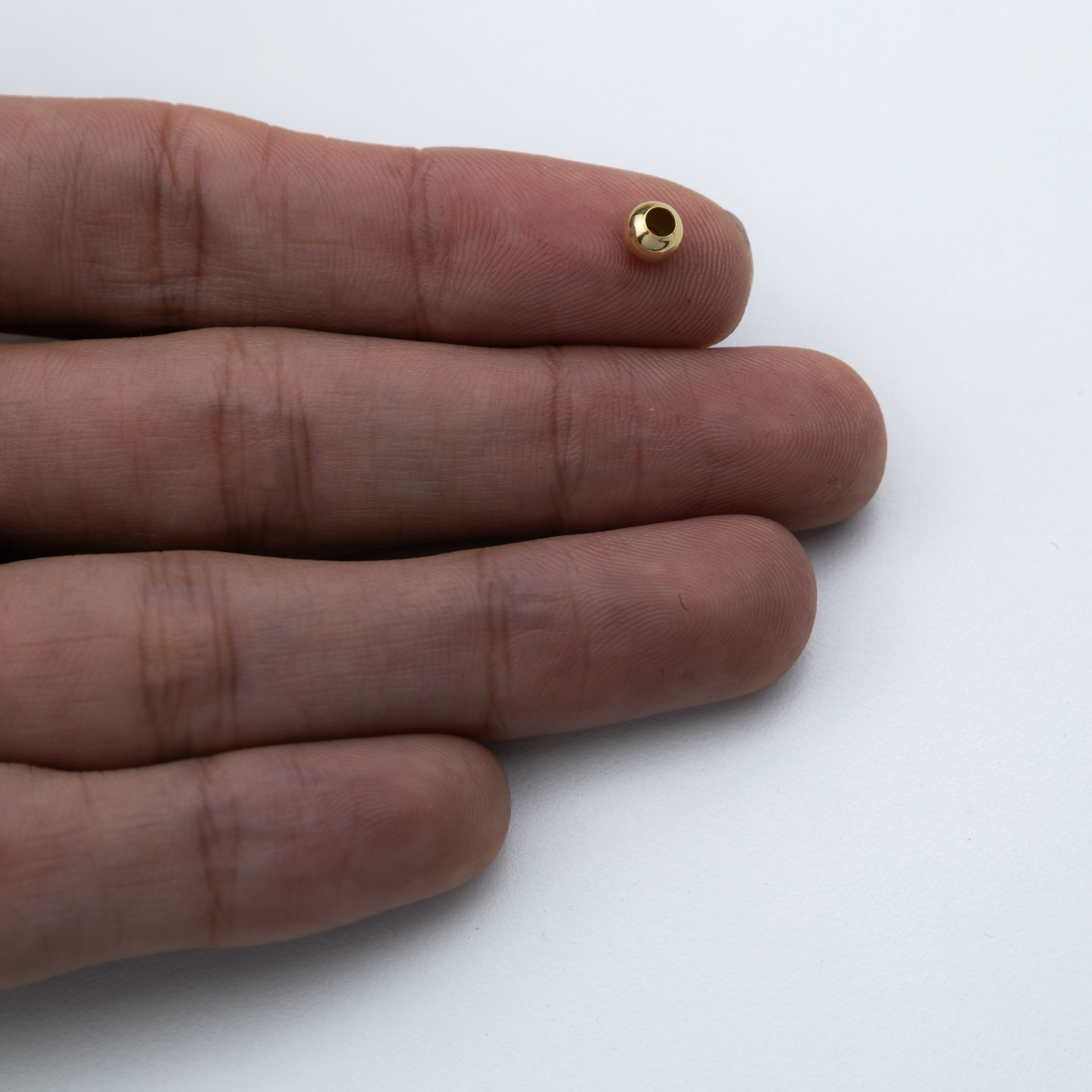 These 18k 5mm Gold-Plated Beads Serve As The Essential Elements for Jewelry Designs, Whether It's for Necklaces, Bracelets, or Other Intricate Pieces. Their Radiant Shine and Uniform Shape Make Them a Preferred Choice for Artisans and Designers Looking for Quality and Consistency.
