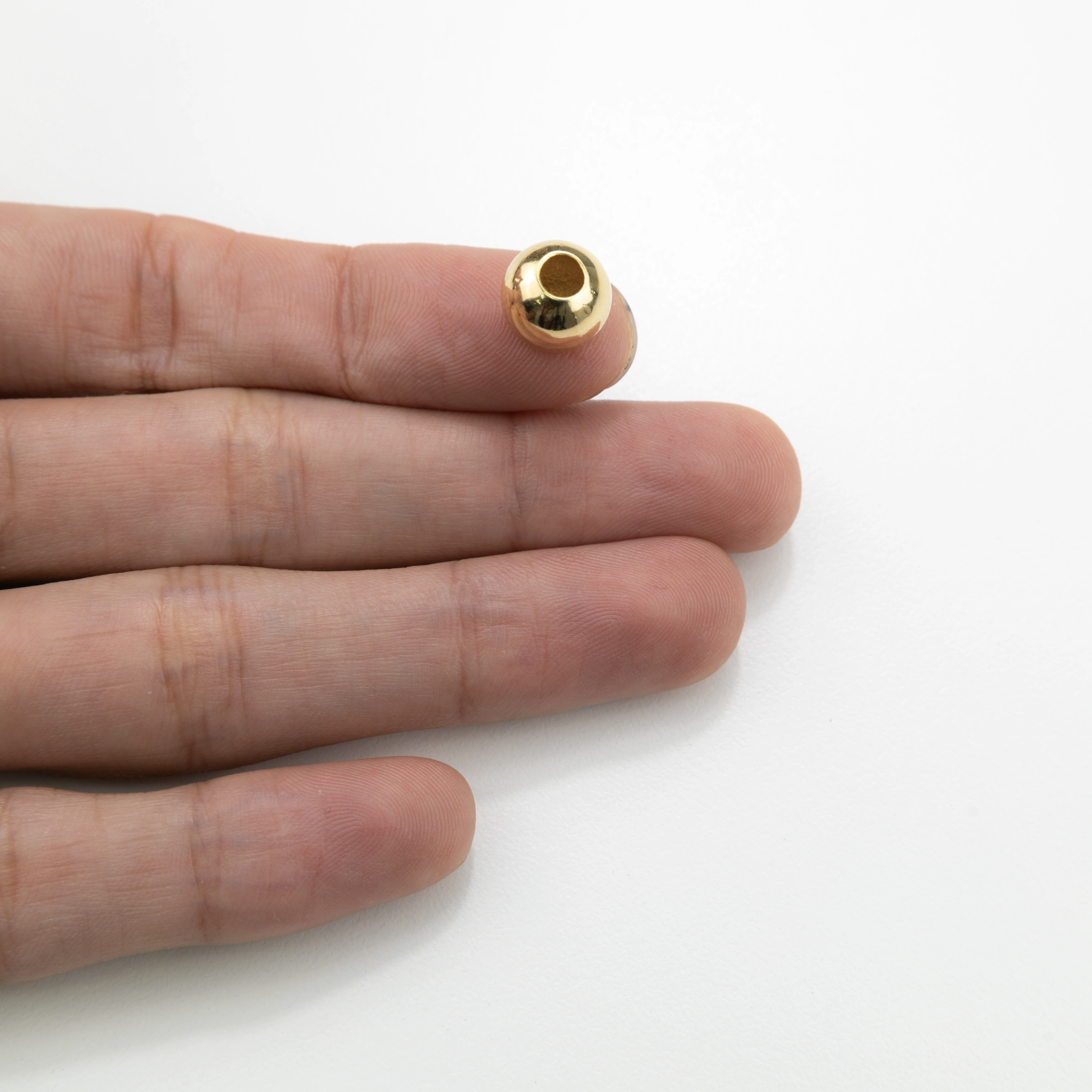 These 18k 10mm Gold-Plated Beads Serve As The Essential Elements for Jewelry Designs, Whether It's for Necklaces, Bracelets, or Other Intricate Pieces. Their Radiant Shine and Uniform Shape Make Them a Preferred Choice for Artisans and Designers Looking for Quality and Consistency.