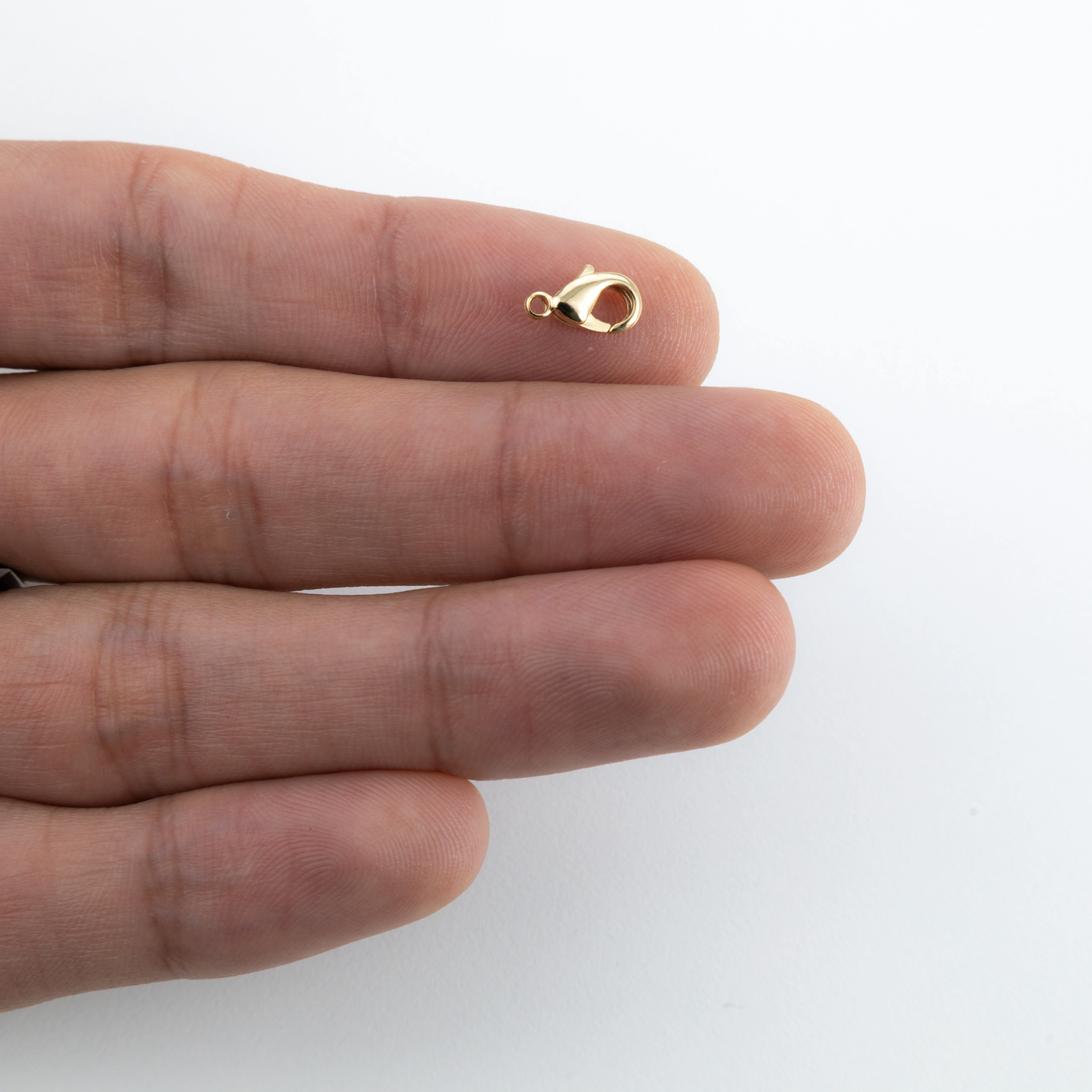 Secure Your Precious Jewelry with Our 18k Gold Plated Lobster Clasp. Designed for Both Strength and Ease Of Use, This Essential Jewelry Component Is a Must-Have for Any Creator or Wearer Of Fine Accessories. Its Smooth Gold Plating Offers a Luxurious Look While Providing a Sturdy Hold For Bracelets, Necklaces, And Other Adornments. Enhance Your Jewelry-Making Arsenal with This High-Quality, Elegant Solution.