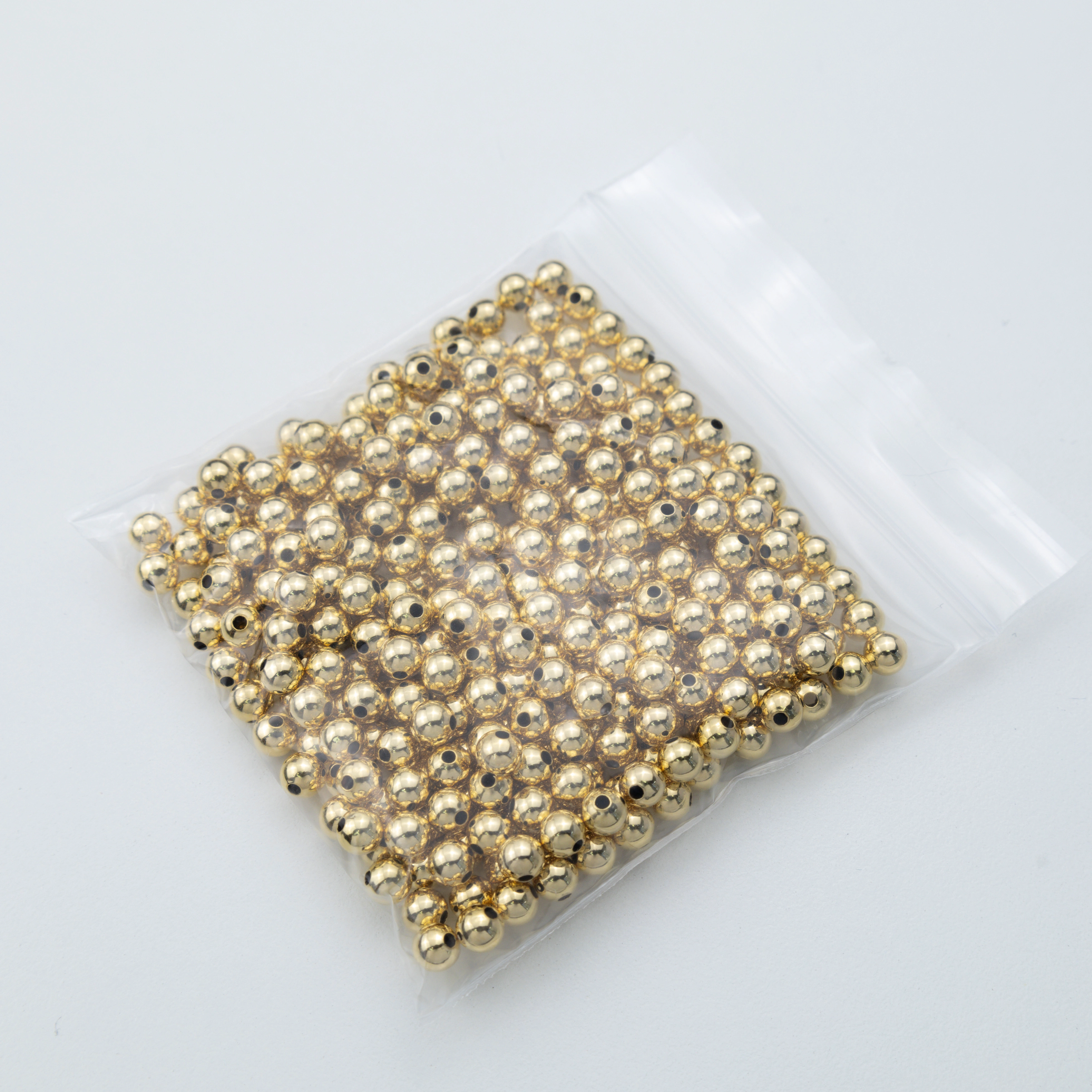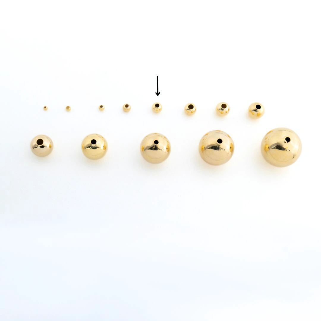 These 18k 5mm Gold-Plated Beads Serve As The Essential Elements for Jewelry Designs, Whether It's for Necklaces, Bracelets, or Other Intricate Pieces. Their Radiant Shine and Uniform Shape Make Them a Preferred Choice for Artisans and Designers Looking for Quality and Consistency.