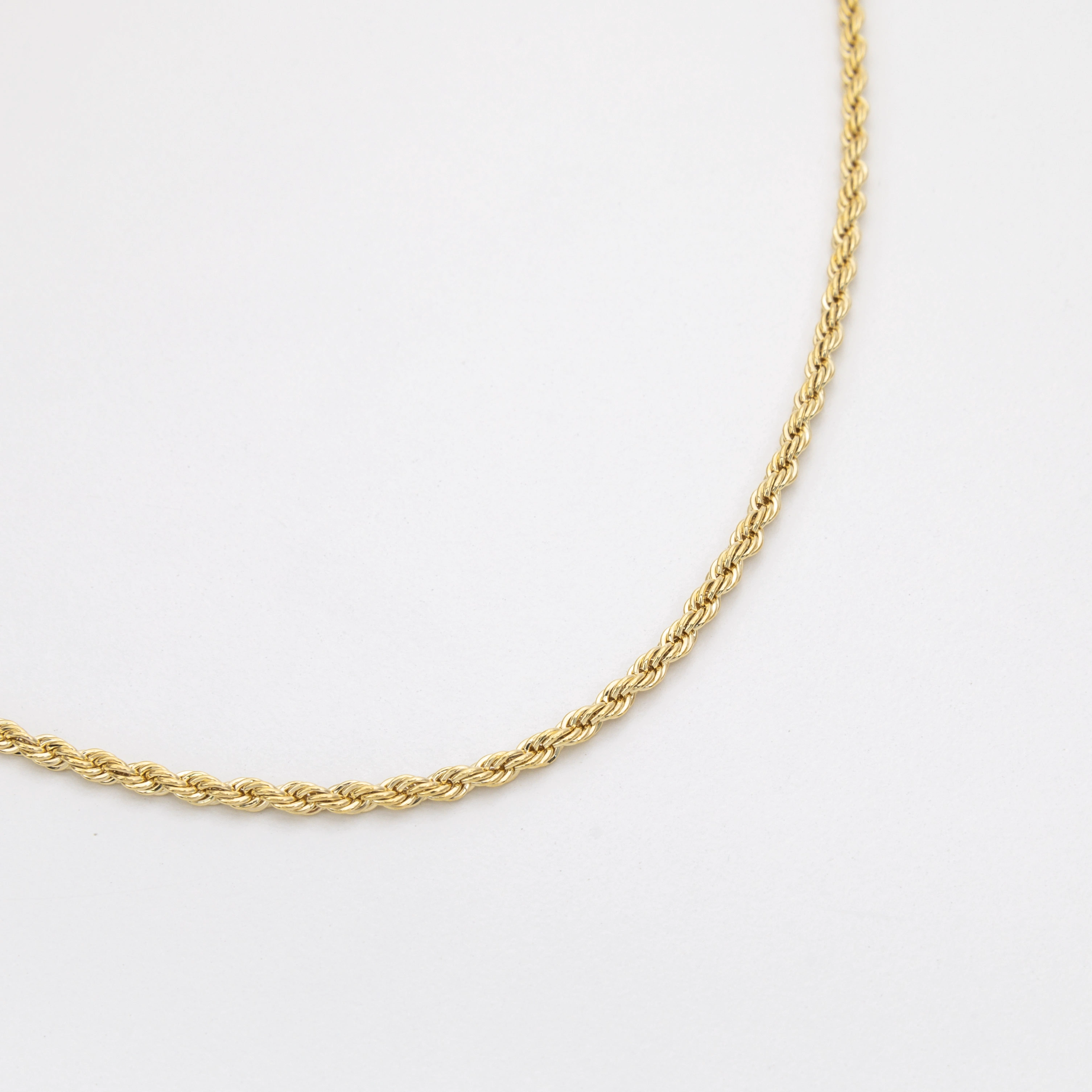 18k Gold Plated 18" Rope Chain Necklace, Rope Link Chain, High Quality, Size 2.3mm, Non Tarnish.