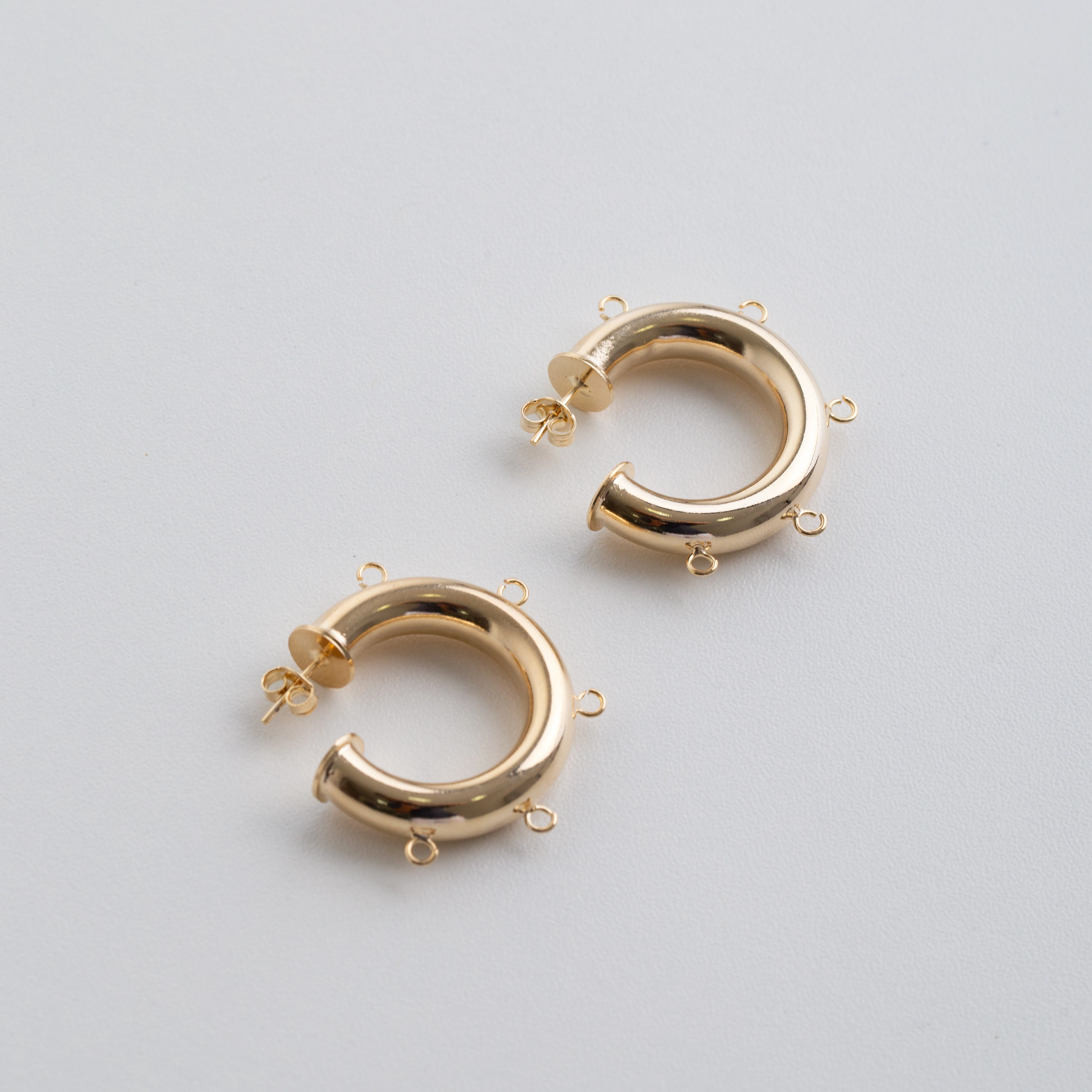 These elegant gold plated earrings are designed with multiple hoops, allowing you to add personalized charms, giving a unique and versatile touch to your style. With their gold plating finish, these earrings are not only modern and stylish but also durable and resistant to wear. Perfect for any occasion, these earrings can be paired with a variety of charms to create a personalized and distinctive look.