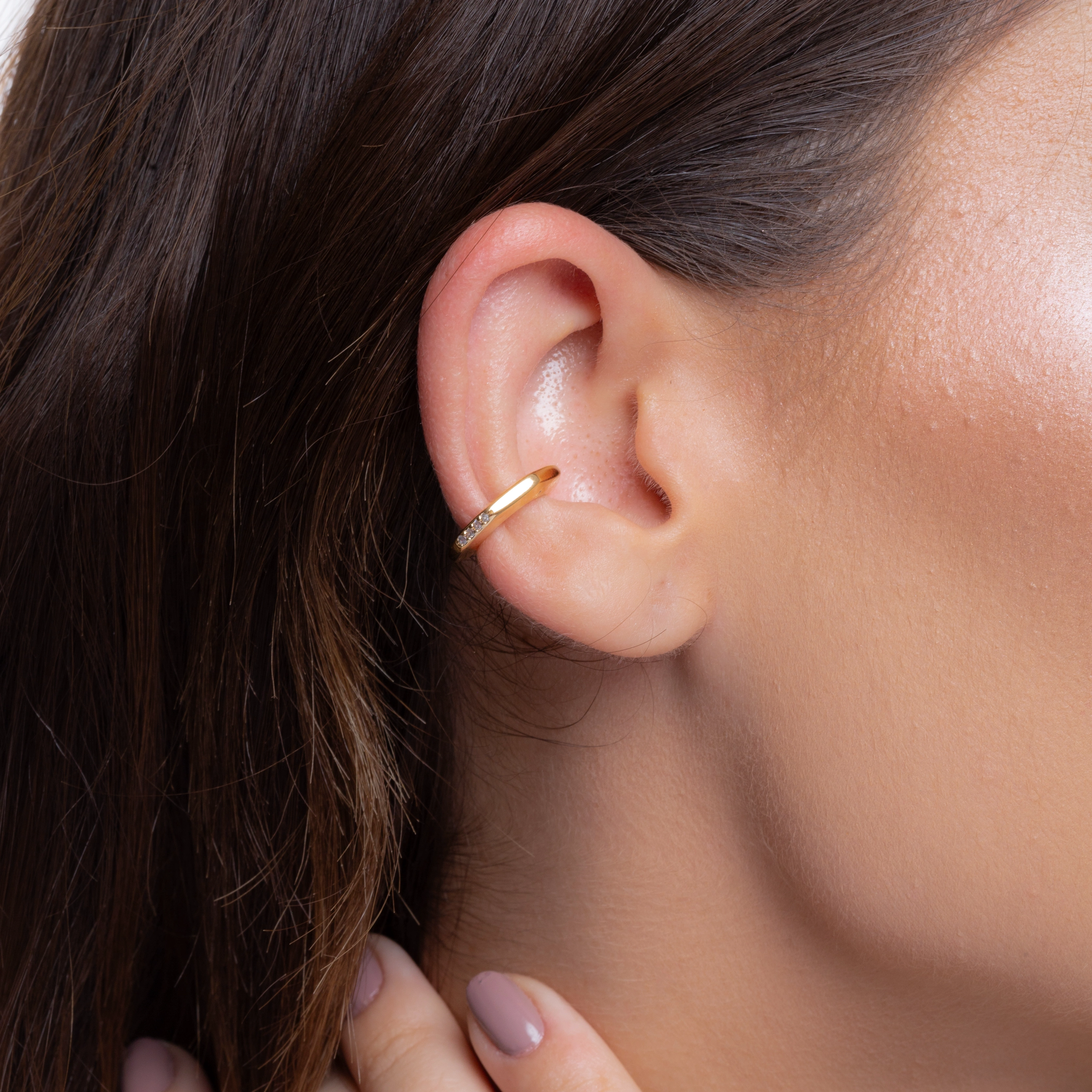 This minimalist gold earcuff boasts a sleek design with a subtle hint of glamour. The smooth, golden arc is tastefully accented with a delicate line of crystals, providing a gentle sparkle that catches the light beautifully. With its simple yet elegant silhouette, this piece is perfect for adding a modern twist to any outfit. Its versatile style makes it suitable for everyday wear or special occasions, offering both comfort and chic sophistication